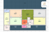 Celle-ci dévoile une salle d'attente plus modeste (3.6m²) entièrement dédiée à un bureau de 16.5m². Cela peut avantageusement apporter une intimité/discretion à une clientèle/patientèle pour des soins ou consultations spécifiques.