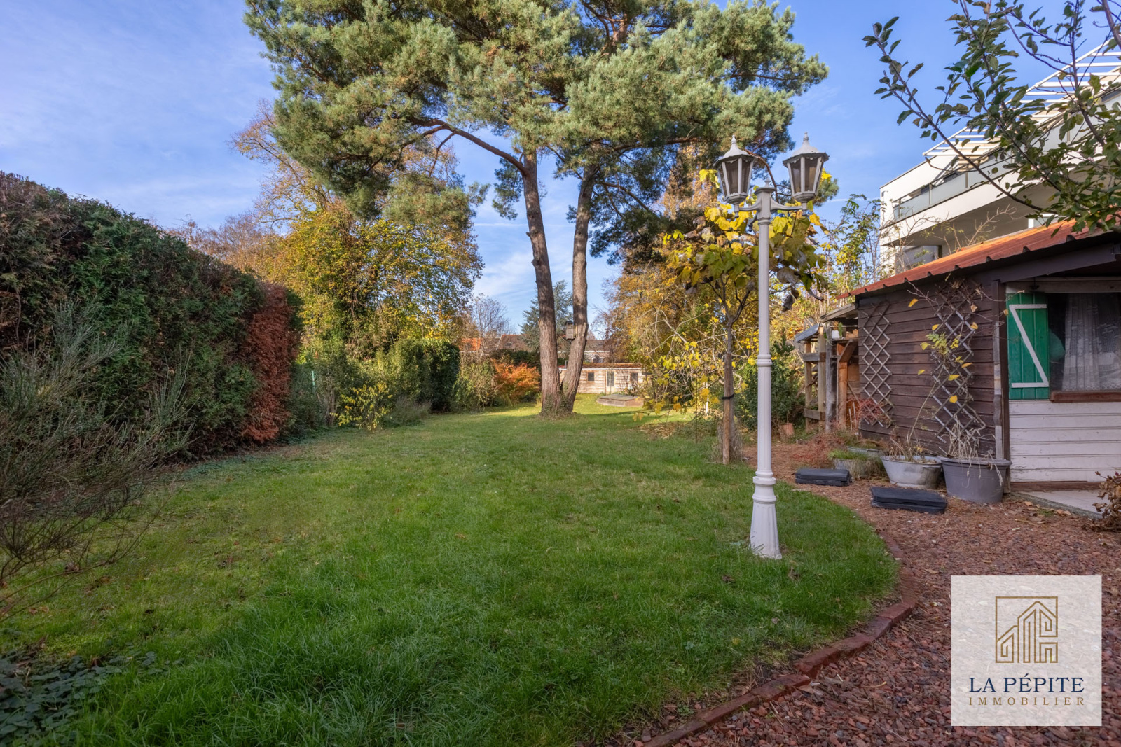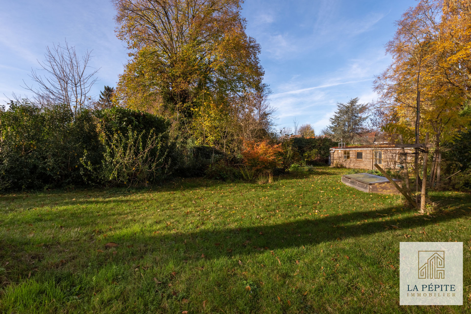 Jardin clos de 680 m², bien orienté et au calme.