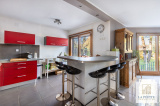 Une cuisine équipée de 17 m², avec coin bar, ouverte sur le salon et orientée vers l’extérieur