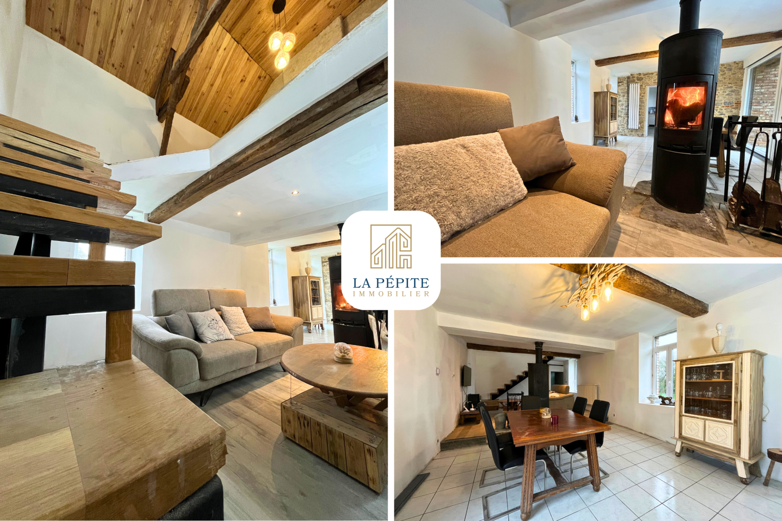 Cette longère rénovée propose une superficie de 124m² sur deux niveaux et s'accompagne d'une grange partiellement aménagée qui réserve encore un énorme potentiel.