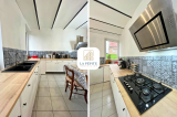 La cuisine de presque 18m² permet d'accueillir les repas quotidiens sans mal et offre une belle longueur de plan de travail.