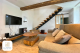 Le salon révèle l'accès à l'étage par un escalier ouvert qui débouche sur une mezzanine de 8m². Un bon endroit pour un bureau ou un dressing.
