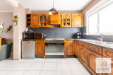 Au rez-de-chaussée, un sas d'entrée, une vaste pièce de salle à manger / cuisine semi équipée disposant d'un piano de cuisson au gaz, un beau salon cosy avec vue sur le jardin, un WC avec un espace buanderie. Un jardin d'hiver s'ouvrant sur la terrasse. A l'étage trois chambres dont une avec dressing, une salle de bain avec douche, vasque et WC.