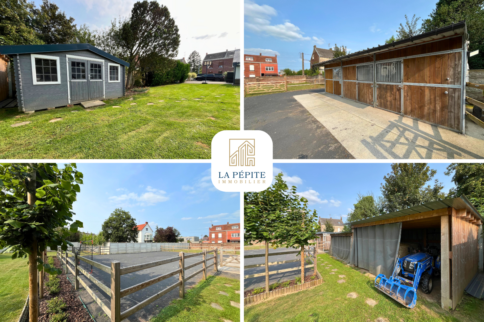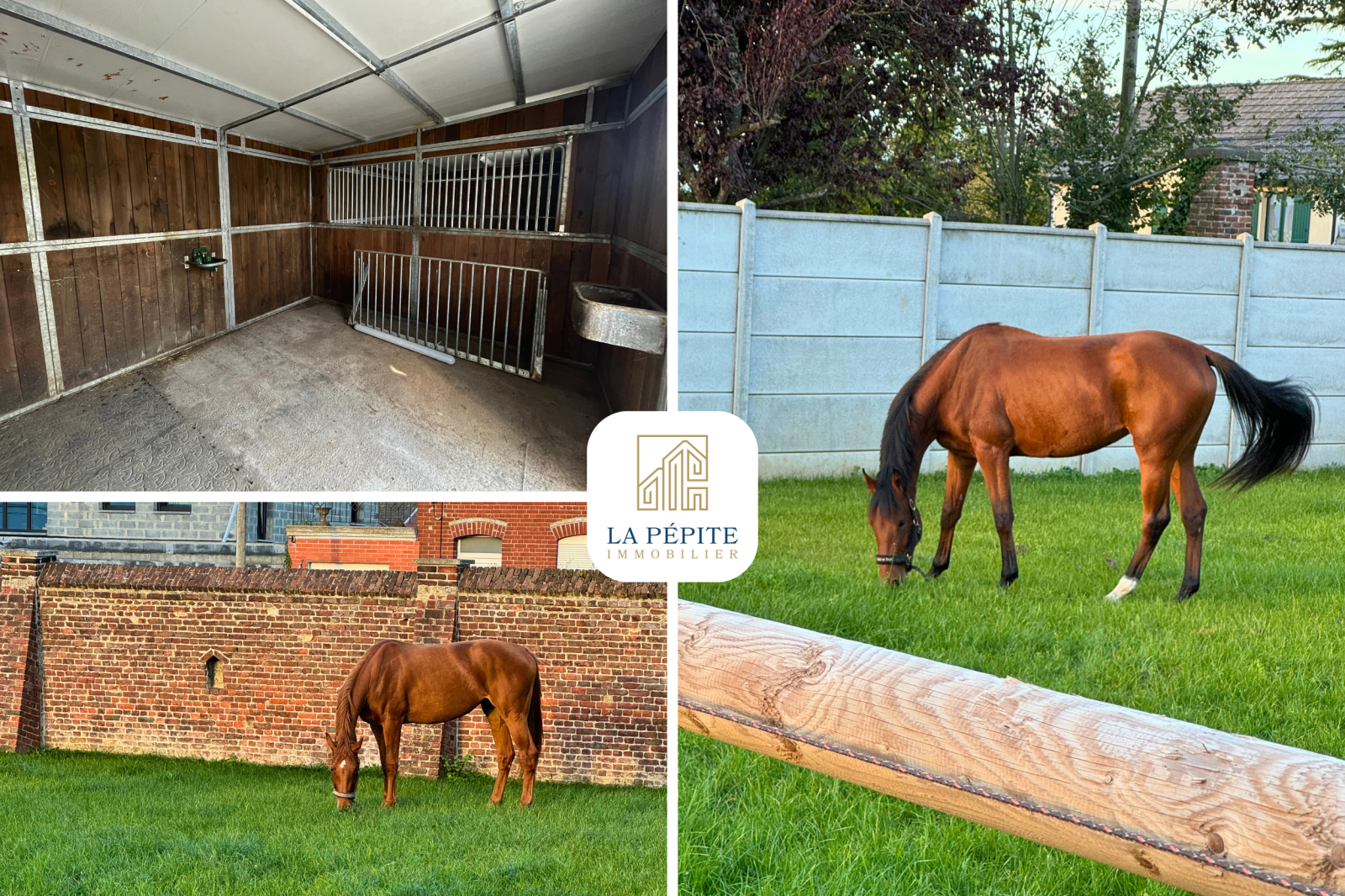 La partie équestre avec un paddock entièrement constitué de dalles de stabilisation, une prairie et trois boxs modernes aux normes avec électricité et abreuvoirs automatiques.