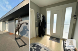 Le garage de 43.5m² attenant à la maison dispose d’une porte automatique large de 4 mètres et d’un étage ajoutant 18m² sous toiture pour du stockage.