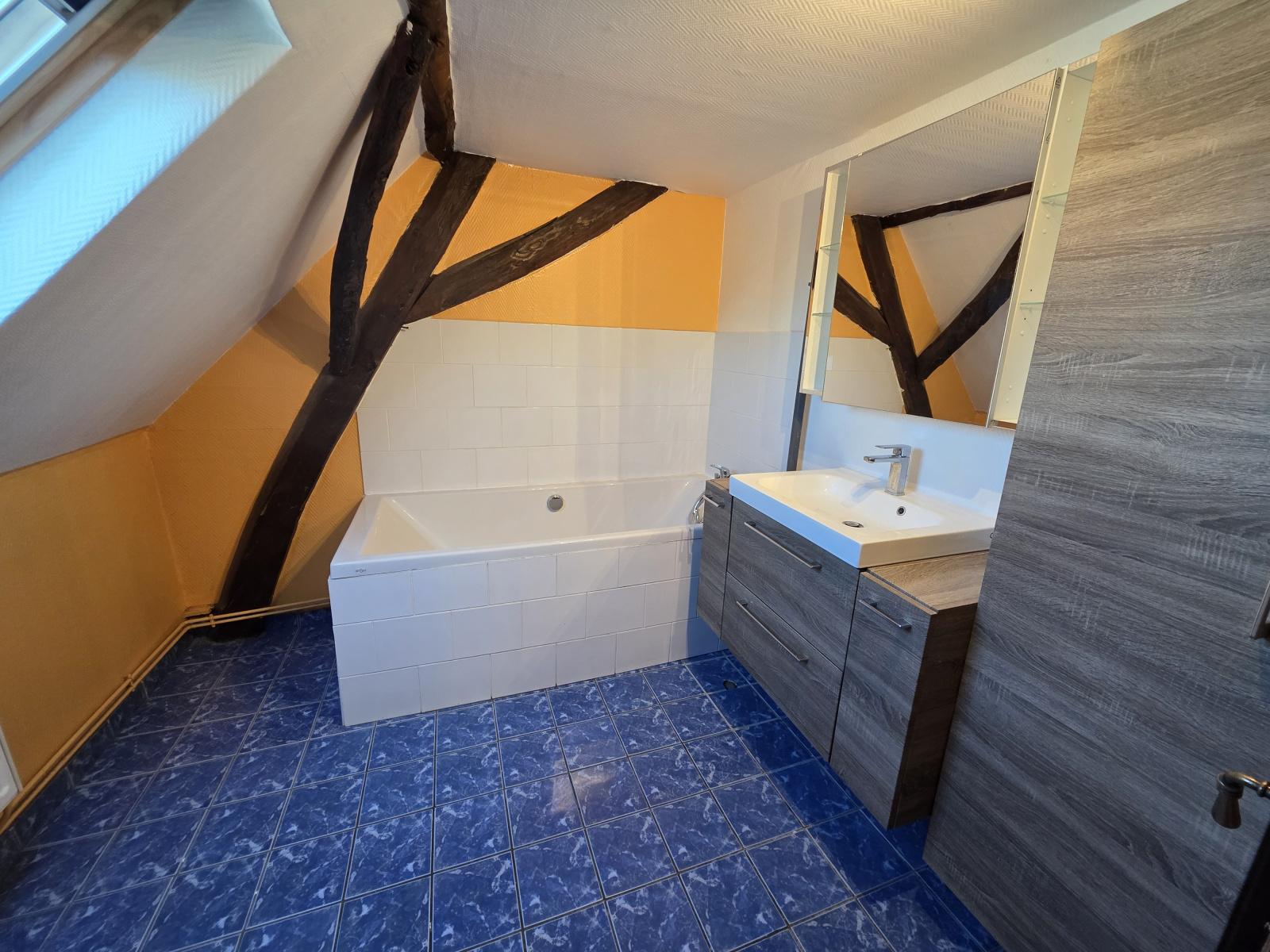 Vous trouverez 3 chambres deux de 12m² et une de 20m² ainsi qu'une salle de bain de 11m² avec baignoir, douche et vasque.