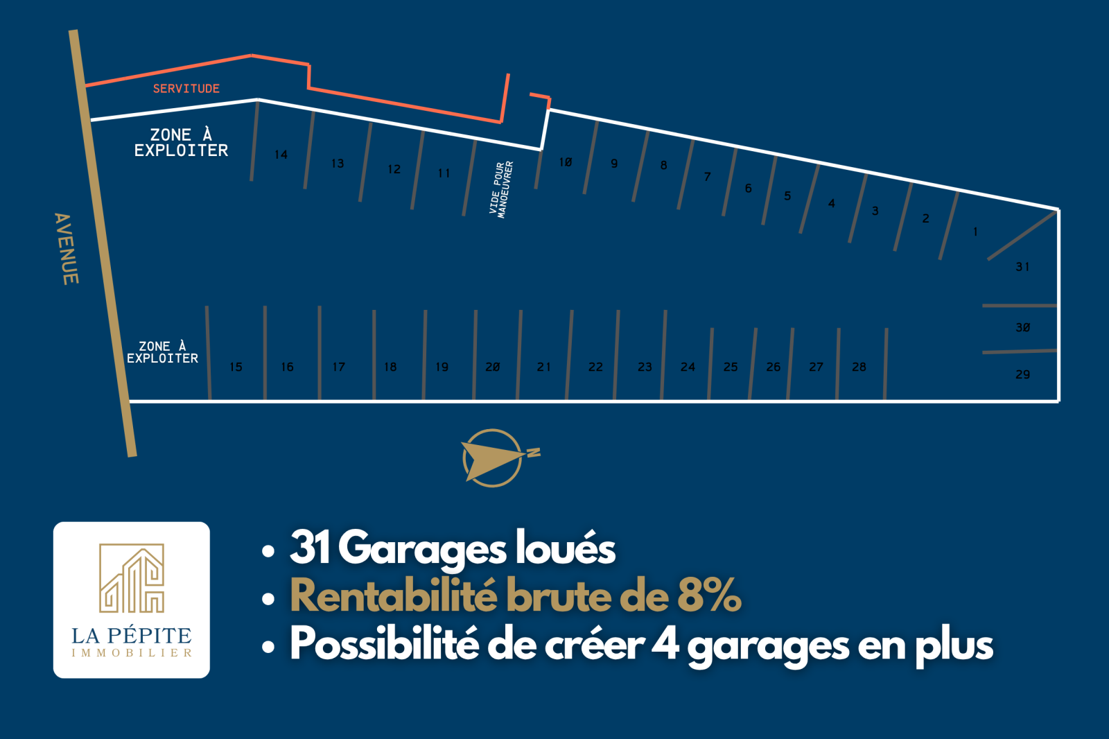 Le lot concerne 31 garages déjà loués.