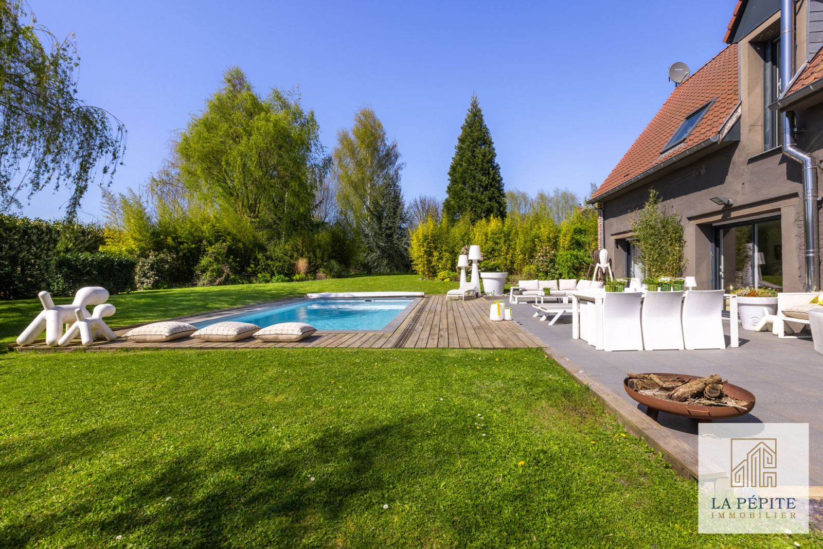 Les extérieurs, soigneusement aménagés, invitent à la détente et à la convivialité :