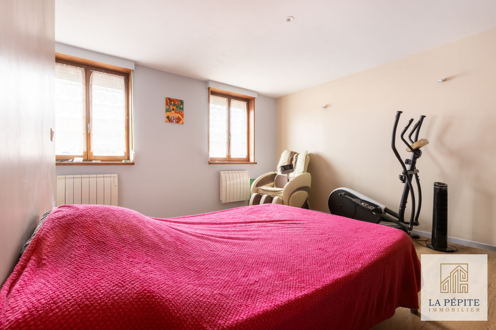 À l’étage, un palier mène à deux belles chambres, dont l’une passante, ainsi qu’à un sanitaire secondaire.