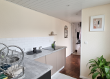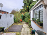 A l'extérieur, une terrasse couverte ainsi qu'une dépendance. A la suite, le terrain vous mène jusque au garage disposant d'une porte basculante.