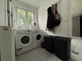 Le rez-de-chaussée comprend également une salle de bains avec espace dressing, une buanderie ingénieusement aménagée et des toilettes séparées, assurant un confort quotidien optimal.