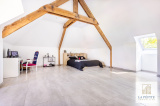 À l’étage, le charme opère avec de magnifiques poutres apparentes, une hauteur sous plafond impressionnante, 2 chambres XXL au look atypique, un espace dressing , et une pièce en rotonde pour faire un bureau télétravail ou une activité libérale.