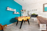 Le salon est confortable et cosy de 29 m2, avec sa mezzanine et son espace bureau.