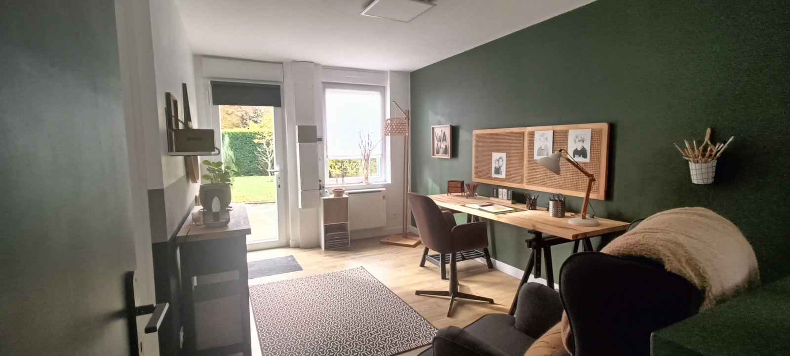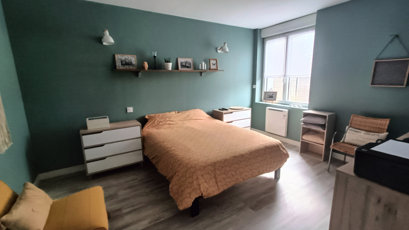 Vaste entrée, 2 chambres, cuisine équipée, salle de bain, wc séparés, grand séjour de 34m2