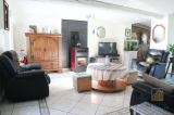 Une pièce de vie de 41m2 réchauffée par un poêle à granules (2018) avec un accès par la baie vitrée à la pergola pour profiter des extérieurs à l'abri des intempéries.