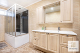 Toujours au rez-de-chaussée, vous trouverez une spacieuse salle de bain de 10m2, moderne et fonctionnelle, avec un espace buanderie. Les WC sont séparés pour encore plus de confort !