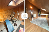 Deux marches séparent une salle de sport de 9.8m² (24m² au sol => possibilité de créer beaucoup de rangements) qui se prolonge avec une chambre d’ami de 5.5m² (13m² au sol).