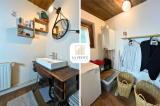 Par la salle à manger en rez-de-chaussée, vous aurez accès à la cave, au couloir qui dessert la salle de bains et les WC et à l’escalier qui permet d’accéder à l’étage et la partie à terminer (placoplatres + passage de prises + parquet + fenêtre de toit)