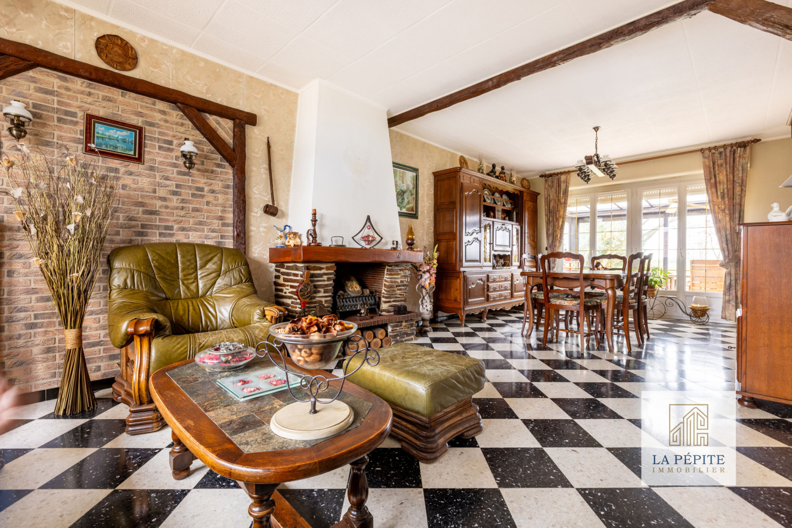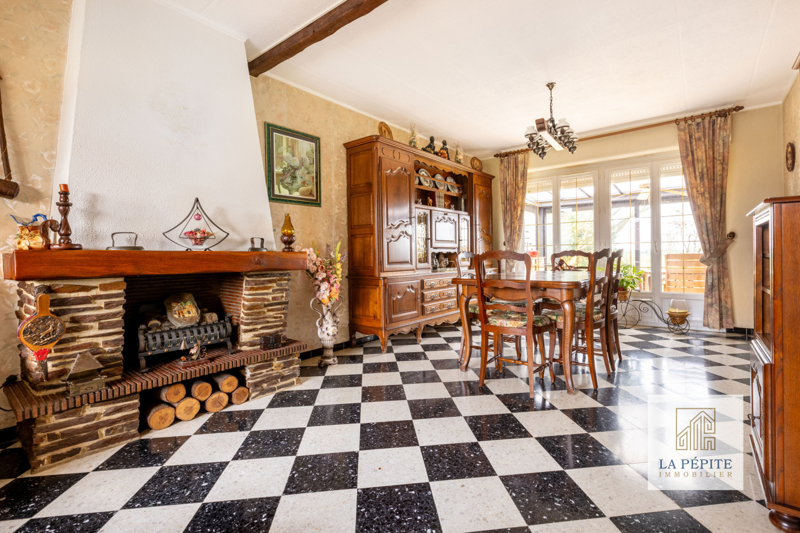 Un séjour / salle à manger de 30 m², avec des baies vitrées donnant directement sur la véranda chauffée parfaitement exposée de 20m2.