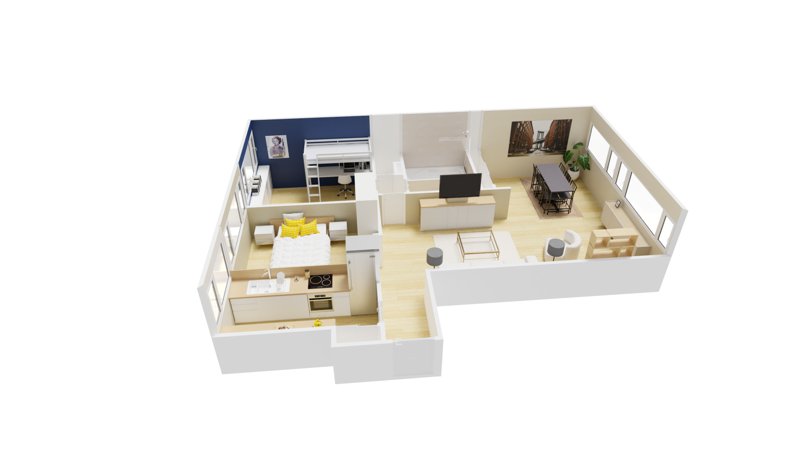 - une pièce de vie lumineuse