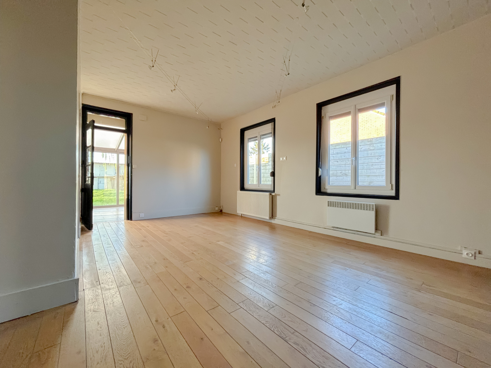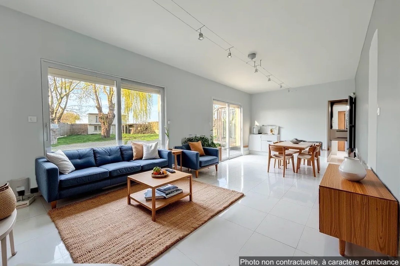 Vous profiterez d'un salon-séjour de 35 m2, avec vue sur le jardin grâce aux deux grandes baies vitrées apportant une belle luminosité.