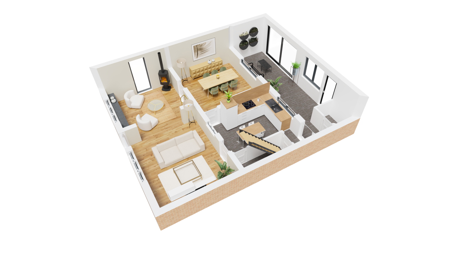 À l’extérieur, le jardin, intime et sans vis-à-vis, devient un véritable cocon : espace détente, potager, aire de jeux… tout est possible.