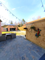 Le jardin est entièrement clos avec un coté "jardin" et une partie plus utilisé comme une "pature" ou possible verger, la maison possède une terrasse carrelé.
